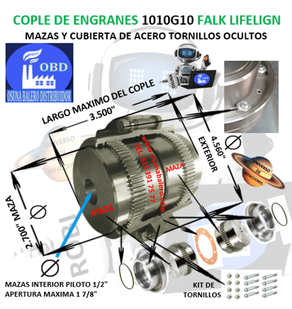 ENVIO GRATIS, ENVIO INMEDIATO DESPUES DE CONFIRMAR SU PAGO.  DIMENSIONES: EXTERIOR 4.560”  LARGO 3.500”  MAZA 2.700”  EQUIVALENTES: SERIE ANTIGUA COPLE FALK RIGIFLEX, SERIE NUEVA LIFELING DE FALK REXNORD, WALDRON COP-FLEX FLEXALIGN, MARTIN 1010G10, DODGE Metallic – DGF gear 1010G10, DGC, Ver Ficha Técnica Aquí