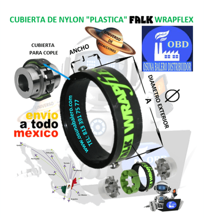10R CUBIERTA FALK DE NYLON PLASTICA 0360572 PARA COPLE WRAPFLEX EXTERIOR A=3.56” ANCHO J=1.10”