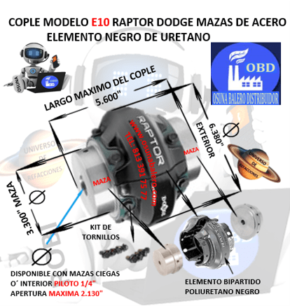 ENVIO GRATIS, ENVIO INMEDIATO DESPUES DE CONFIRMAR EL PAGO DEL PRODUCTO. DIMENSIONES: EXTERIOR 6.380” LARGO 5.600 ”  MAZA 3.300” INCLUYE: 1 ELEMENTO DE POLIURETANO NEGRO CON KIT DE TORNILLOS NO. PARTE 015847 Y 2 MAZAS NO. PARTE 015238 BARRENO PILOTO, EQUIVALENTE: OMEGA REXNOR E10, TB WOOD´S DURA-FLEX WE10, Ver Ficha Técnica Aquí