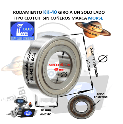 ENVIO GRATIS, ENVIO 24 A 48 HRS. DESPUES DE CONFIRMAR EL PAGO DEL PRODUCTO. DIMENSIONES:  INTERIOR =40mm  EXTERIOR =80mm ANCHO =18mm EQUIVALENTE: GMN FK-6208, KK40, TSUBAKI BB40, BB-40, STIEBER CSK40, CSK-40, Ver Ficha Técnica Aquí