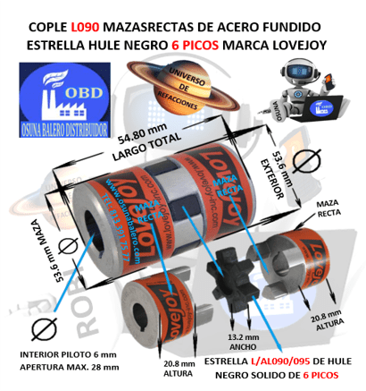 L090 COPLE LOVEJOY TIPO L DE ACERO BARRENO PILOTO 1/4″* EXTERIOR 53.6mm LARGO 54mm