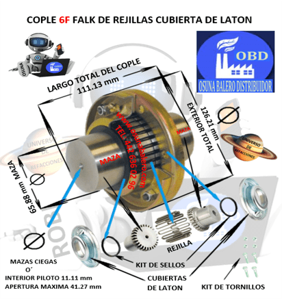 ENVIO GRATIS, ENVIO INMEDIATO DESPUES DE CONFIRMAR EL PAGO DEL PRODUCTO. DIMENSIONES: EXTERIOR 126.21mm LARGO 111.13mm MAZA 65.88mm EQUIVALENTE:  REXNORD FALK STEEL FLEX NO. 1040T20, 1040T MAZA, 1040T CUBIERTA, 1040T ELEMENTO FLEXIBLE GRID, Ver Ficha Técnica Aquí