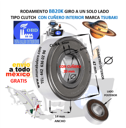 ENVIO GRATIS, ENVIO INMEDIATO DESPUES DE CONFIRMAR EL PAGO DEL PRODUCTO. DIMENSIONES INTERIOR =20mm  EXTERIOR =47mm ANCHO =14mm  EQUIVALENTE: GMN FKN-6204, MORSE KK-20-K1, TSUBAKI BB-20-K, STIEBER CSK-20-P, Ver Ficha Técnica Aquí