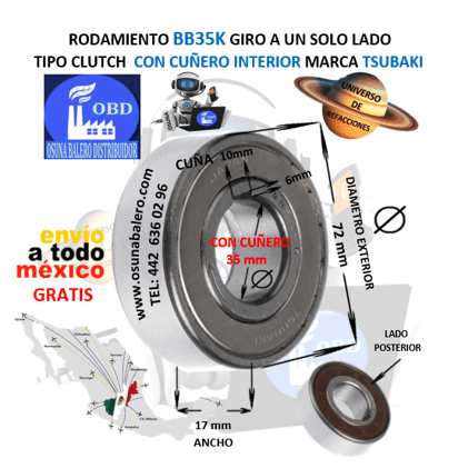 PRODUCTO AGOTADO, ENVIO 7 A 8 SEMANAS DESPUES DE CONFIRMAR EL PAGO DEL PRODUCTO. DIMENSIONES INTERIOR =35mm  EXTERIOR =72mm ANCHO =17mm  EQUIVALENTE: GMN FKN-6207, MORSE KK-35-K1, TSUBAKI BB-35-K, STIEBER CSK-35-P, Ver Ficha Técnica Aquí