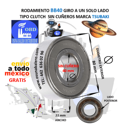 BB40 CLUTCH TSUBAKI FRENO DE CONTRAVUELTA DE BOLAS INTERIOR 40mm EXTERIOR 80mm ANCHO 22mm