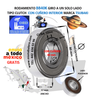 ENVIO GRATIS, ENVIO INMEDIATO DESPUES DE CONFIRMAR EL PAGO DEL PRODUCTO. DIMENSIONES INTERIOR =40mm EXTERIOR =80mm ANCHO =18mm EQUIVALENTE: GMN FKN-6208, MORSE KK-40-K1, TSUBAKI BB-40-K, STIEBER CSK-40-P, Ver Ficha Técnica Aquí
