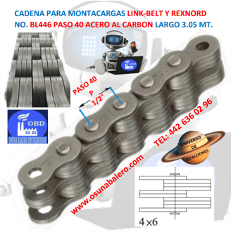 BL446 CADENA MONTACARGAS PASO 40 4 X 6 MARCA LINK-BELT ROLLO 3.05MT.=10FT