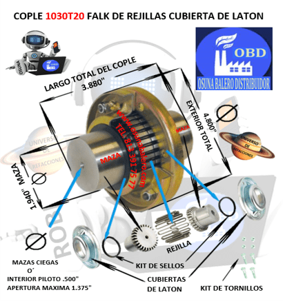 ENVIO GRATIS, ENVIO INMEDIATO DESPUES DE CONFIRMAR EL PAGO DEL PRODUCTO. DIMENSIONES: EXTERIOR 4 13/16”  LARGO 3 7/8”  MAZA 1 15/16”  REXNORD FALK STEEL-FLEX NO. 1030T20, 1030T MAZA, 1030T CUBIERTA, 1030T ELEMENTO FLEXIBLE GRID, EQUIVALENTE 4F FALK, Ver Ficha Técnica Aquí