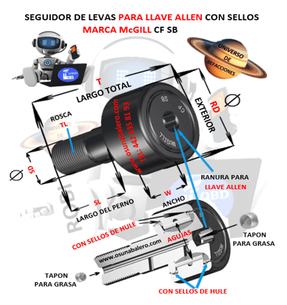 CF 1 3/8 SB McGILL SEGUIDOR DE LEVAS PARA LLAVE ALLEN TORNILLO 1/2″