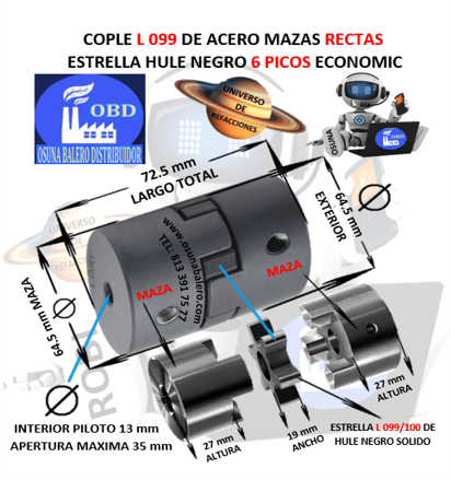 ENVIO 24 A 48 HRS. DESPUES DE CONFIRMAR EL PAGO DEL PRODUCTO. DIMENSIONES: A=64.5mm B=72.5mm EQUIVALENTE: MARTIN ML 099, MS 099, SRL 099/100, SRL099/100, LOVEJOY L-099, NO.2 FIERRO ANTIMONIO Ver Ficha técnica Aquí
