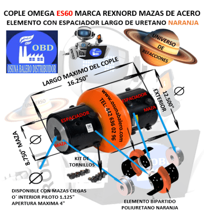 ES60 COPLE ESPACIADOR OMEGA REXNORD BARRENO PILOTO EXTERIOR 12 1/2” LARGO 16 1/4”