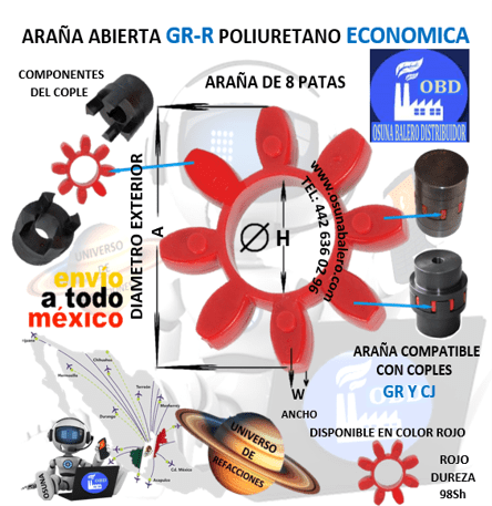 COD. S10/QF4 ENVIO INMEDIATO, DIMENSIONES: A=65mm W=15mm H=29mm EXTERIOR 8 PUNTAS CURVAS EQUIVALENTES: ECO GR-28-R, ECO No. 2, LOVEJOY CJ 28/38  68514462070, CJ-28A, CJ28A, ROTEX KTR GR28, GR-28, SPIDEX 28, HABIX HWN-228