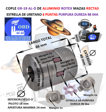 GR-19 AL-D COPLE ROTEX DE ALUMINIO MAZAS RECTAS 1a EXTERIOR 40mm LARGO 66mm ESTRELLA PURPURA GR-19 DUREZA 98A
