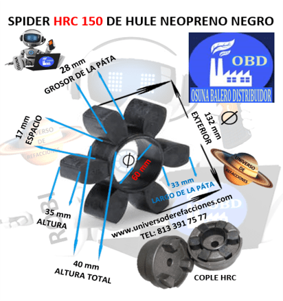 HRC 150 SPIDER ECONOMIC HULE NEOPRENO NEGRO EXTERIOR 132mm ALTURA 40mm