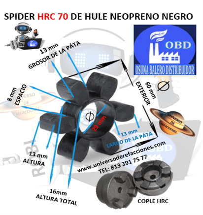 HRC 70 SPIDER ECONOMIC HULE NEOPRENO NEGRO EXTERIOR 60mm ALTURA 16mm