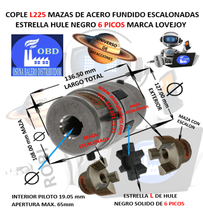 L225 COPLE LOVEJOY TIPO L DE ACERO BARRENO PILOTO 3/4″ EXTERIOR 127mm LARGO 136.50mm