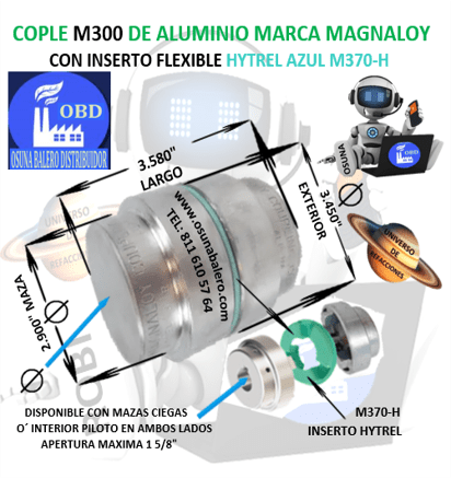 COD. S1/QE4 ENVIO GRATIS, ENVIO INMEDIATO DESPUES DE CONFIRMAR SU PAGO. COPLE MAGNALOY M-300H DIAMETRO EXTERIOR 3.450” LARGO 3.580”  ACOPLAMIENTO COMPLETO INCLUYE ELEMENTO INTERNO HYTREL AZUL M370-H Y 2 MAZAS ( MAZAS DISPONIBLES  CIEGAS Y BARRENO PILOTO )  Premium Flexible Drive Couplings M 300 + M-370-H, Ver Ficha Técnica Aquí