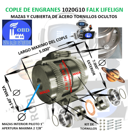 1020G10 COPLE DE ENGRANES FALK LIFELIGN TORNILLOS OCULTOS EXTERIOR 7.000” LARGO 5.000”