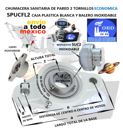COD. S0/QB4 ENVIO 24 A 48 HRS. DIMENSIONES: FLECHA d=3/4” e=90mm a=113mm z=33.7mm, CHUMACERA DE BRIDA 2 TORNILLOS CAJA PLASTICA BLANCA PARA INDUSTRIA ALIMNETICIA CON RODAMIENTO ACERO INOXIDABLE, EQUIVALENTE: DODGE 127524 F2B-SCEZ-012-PCR, OBD SPUCFL-204-12, ECO UCFLP204-12, ECO S-UCFLPL204-12W, SKF FYTWK 3/4 YHT, NRF-OBD-16160. Ver Ficha Técnica Aquí