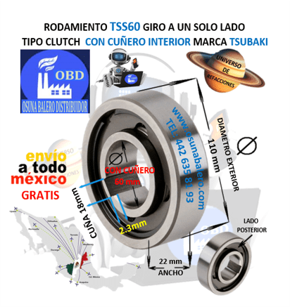 ENVIO GRATIS, ENVIO INMEDIATO DESPUES DE CONFIRMAR EL PAGO DEL PRODUCTO. DIMENSIONES: INTERIOR =60mm  EXTERIOR =110mm ANCHO =22mm EQUIVALENTES: STIEBER AS-60, MORSE NSS-60, RENOLD REUS-60, Formsprag USA AS60, Ringspann FCN60, TSS-60 FREEWHEEL, Ver Ficha Técnica Aquí